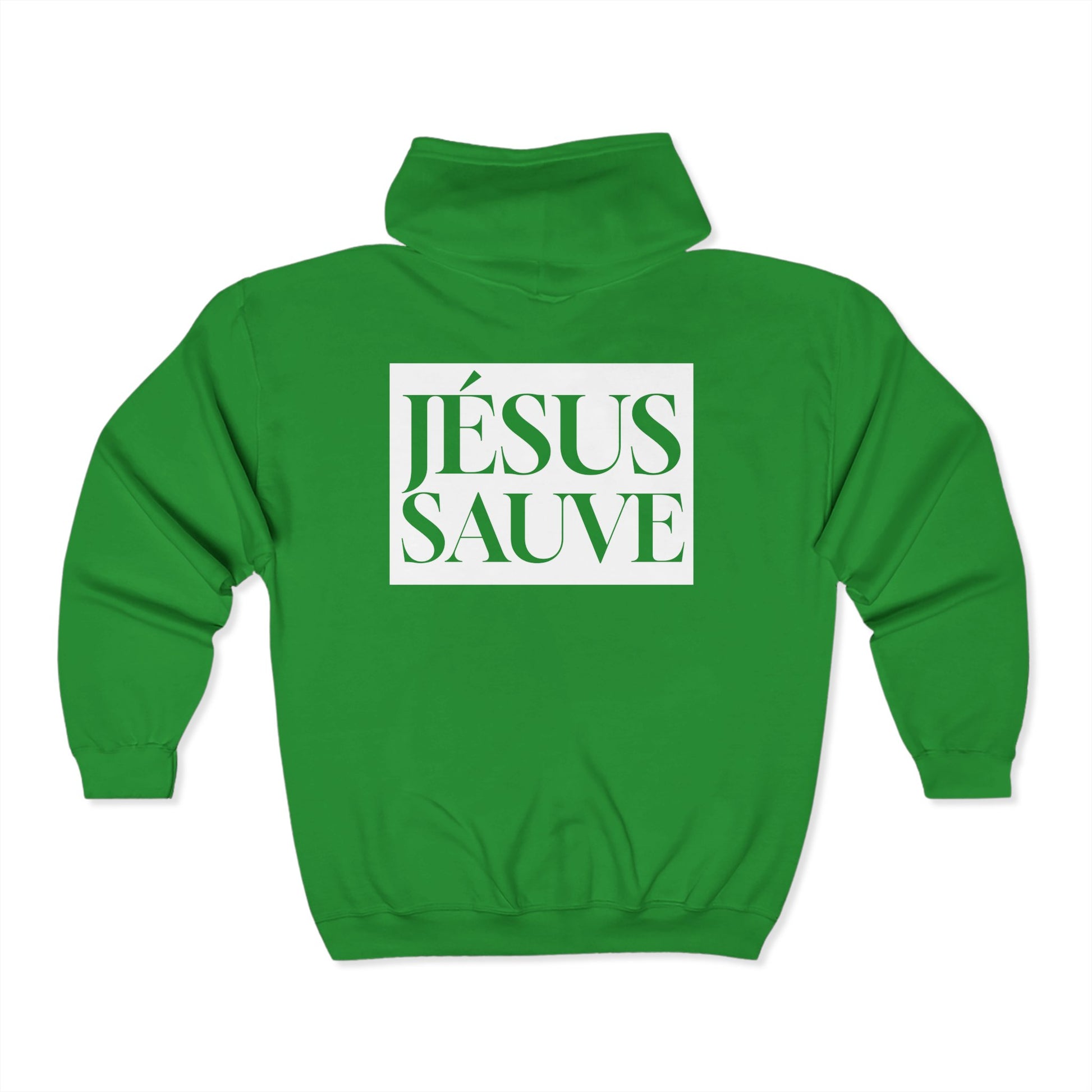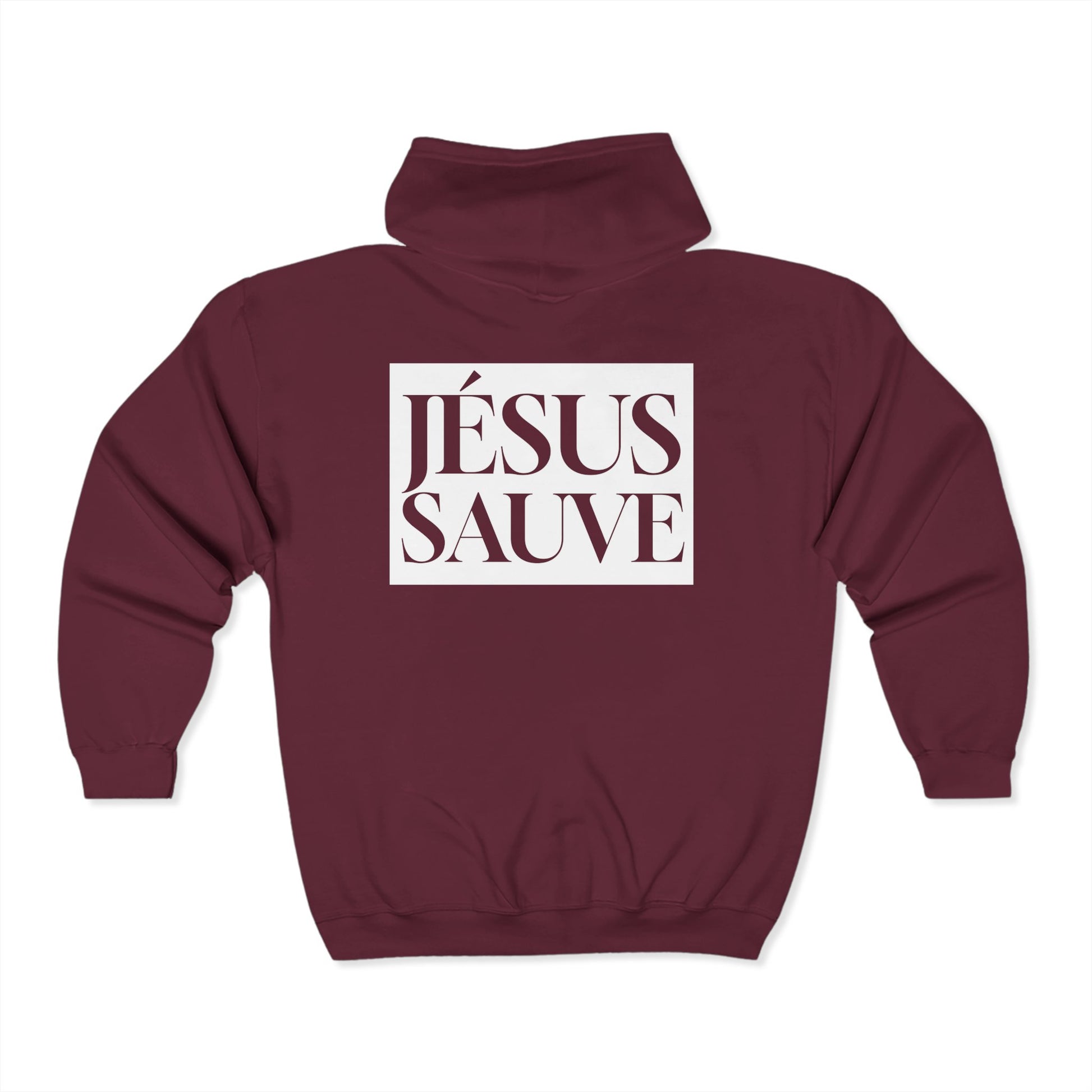 Jésus sauve - Coton ouaté à capuche zippé pour adulte - Français