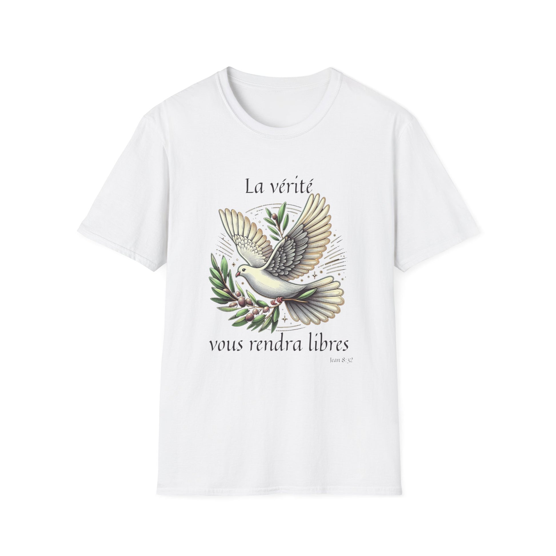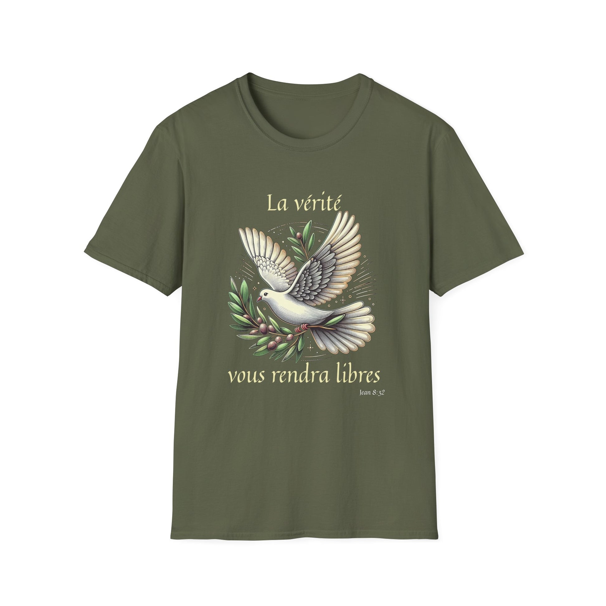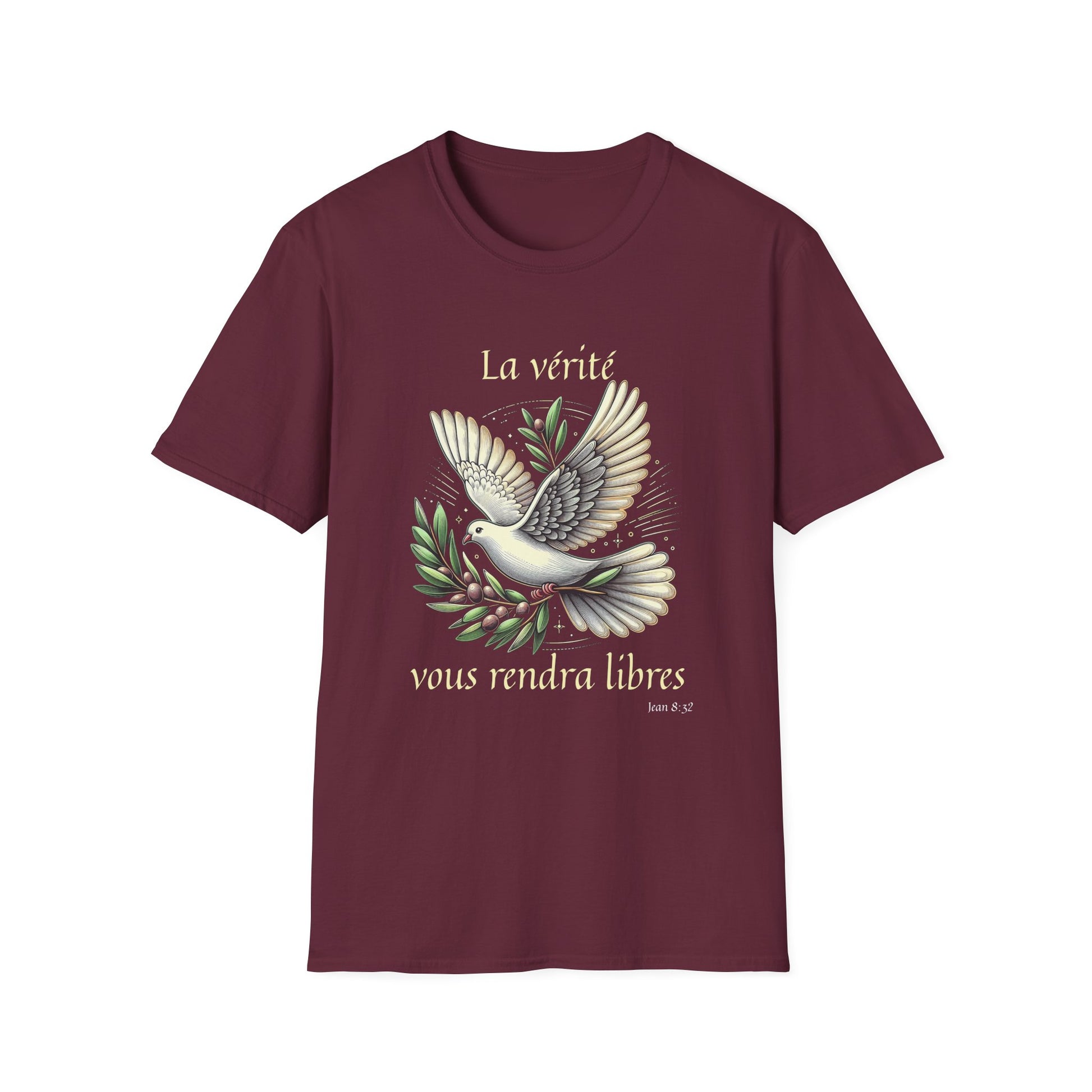 .: Avant : Une colombe portant un rameau d'olivier. Le texte dit "La vérité vous rendre libres [Jean 8:32]"