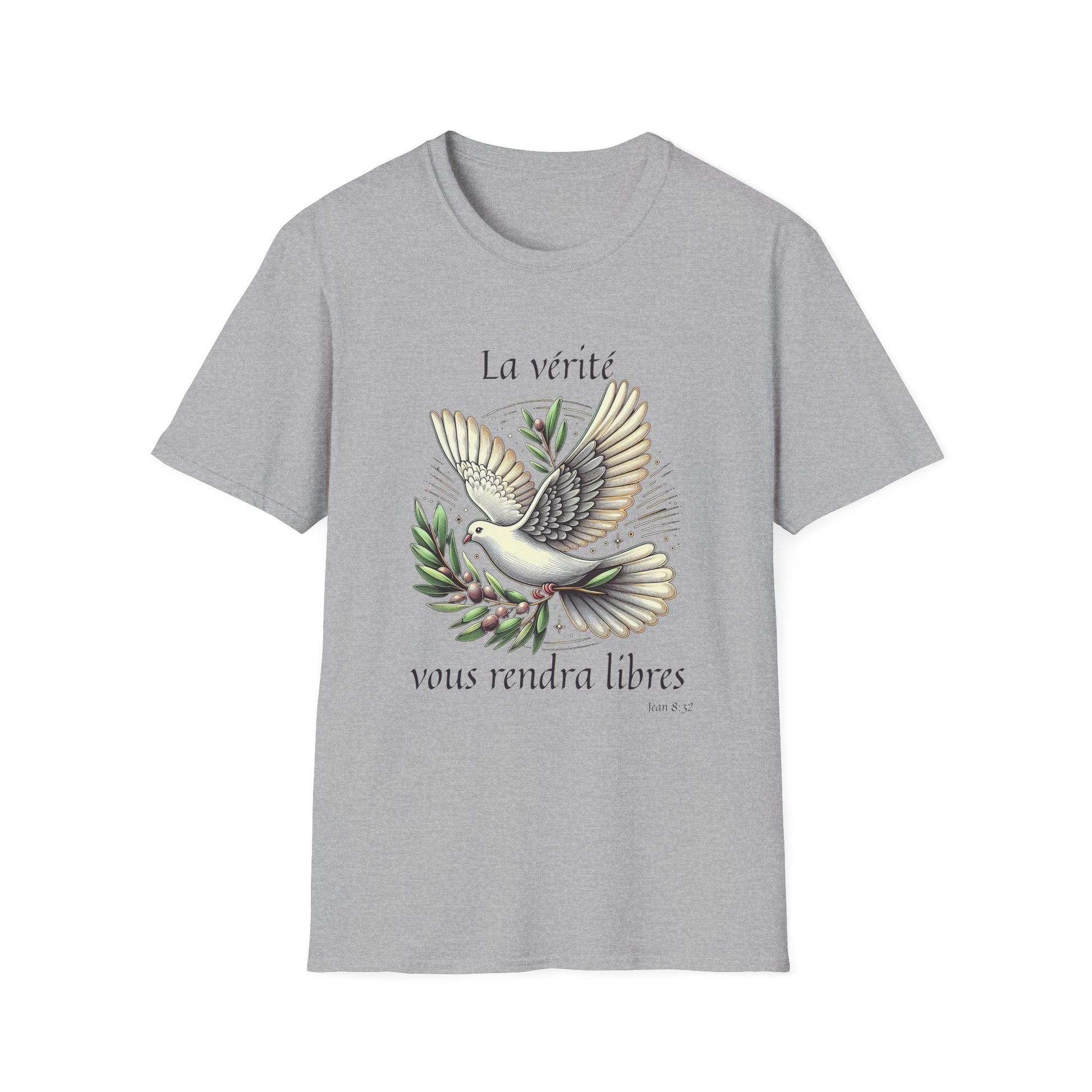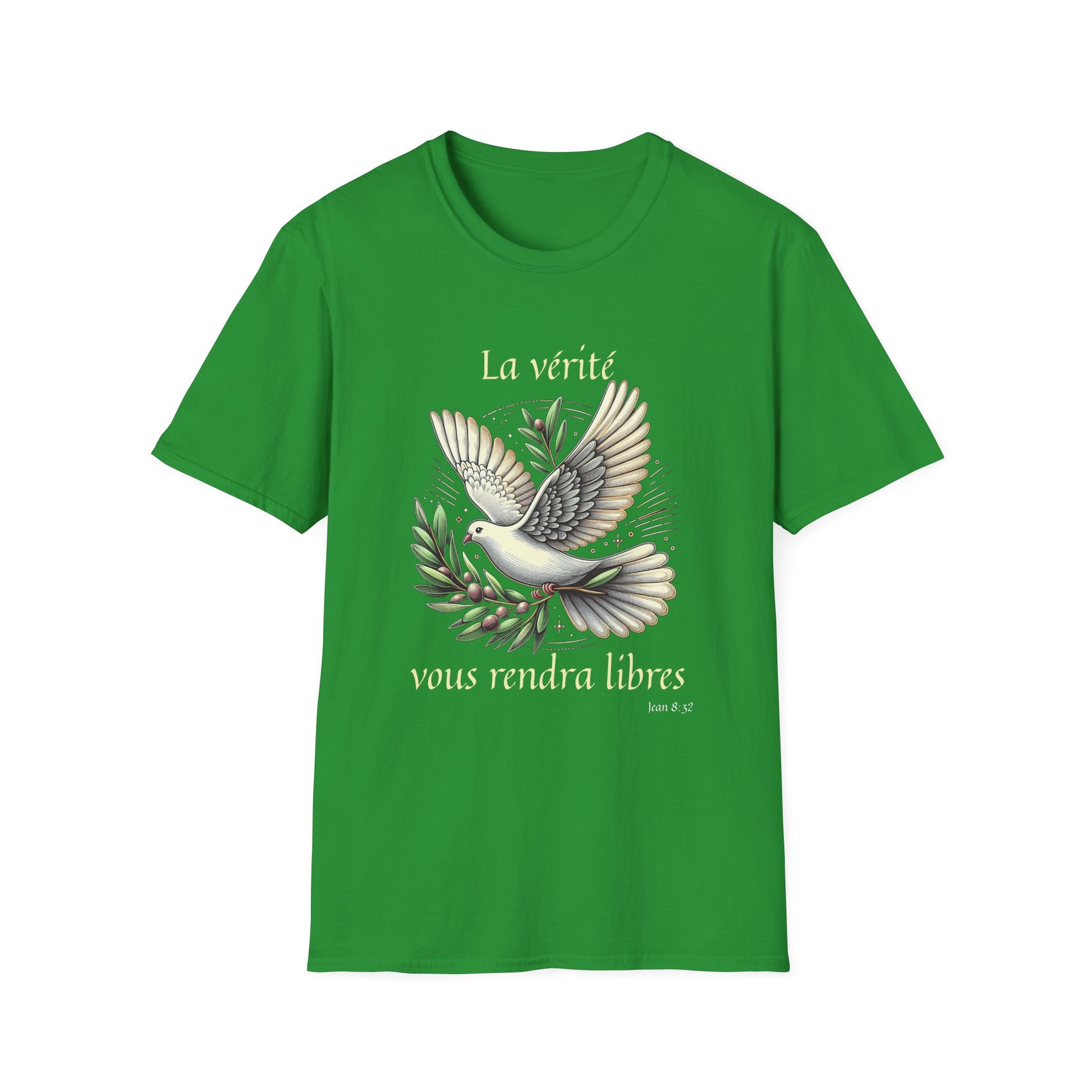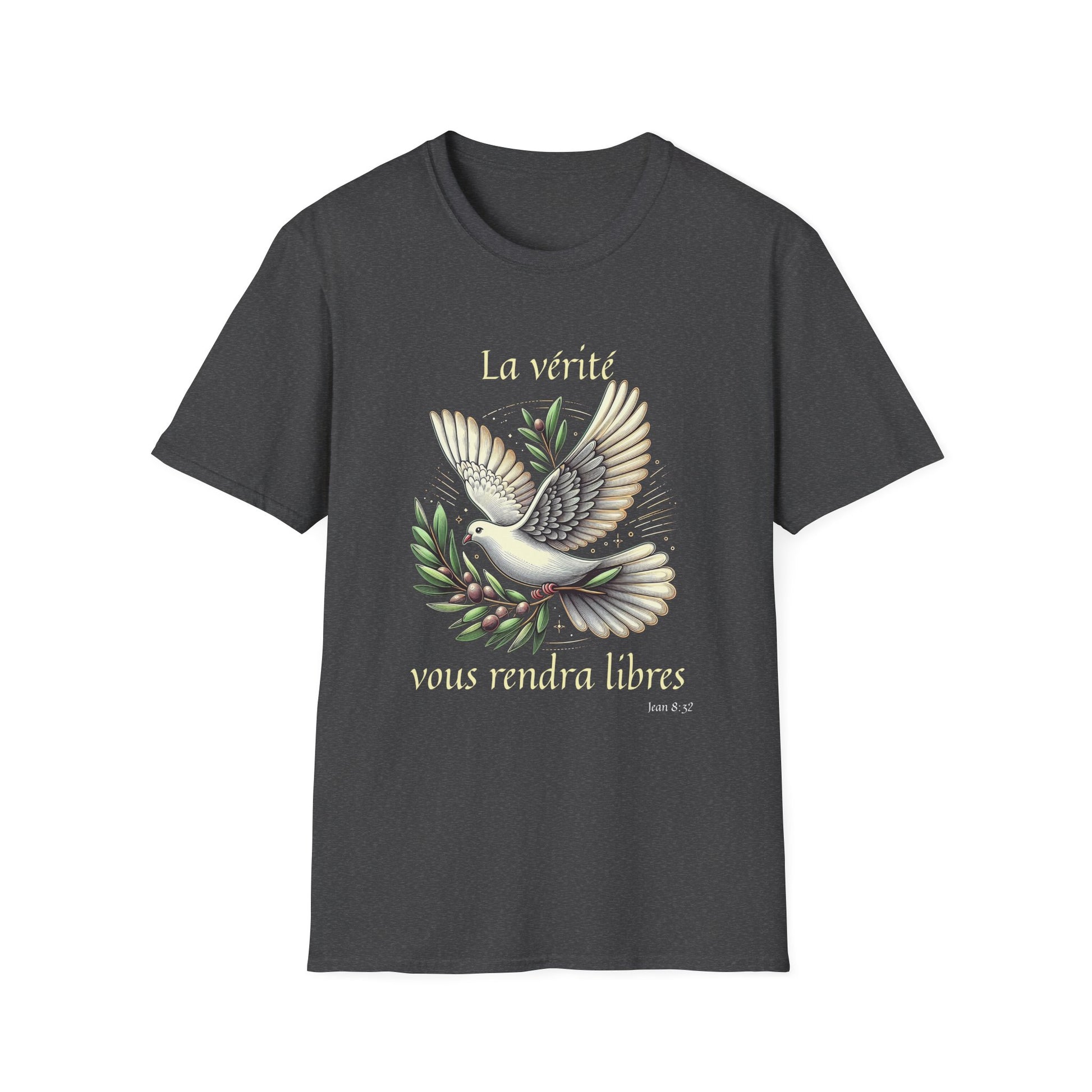 .: Avant : Une colombe portant un rameau d'olivier. Le texte dit "La vérité vous rendre libres [Jean 8:32]"