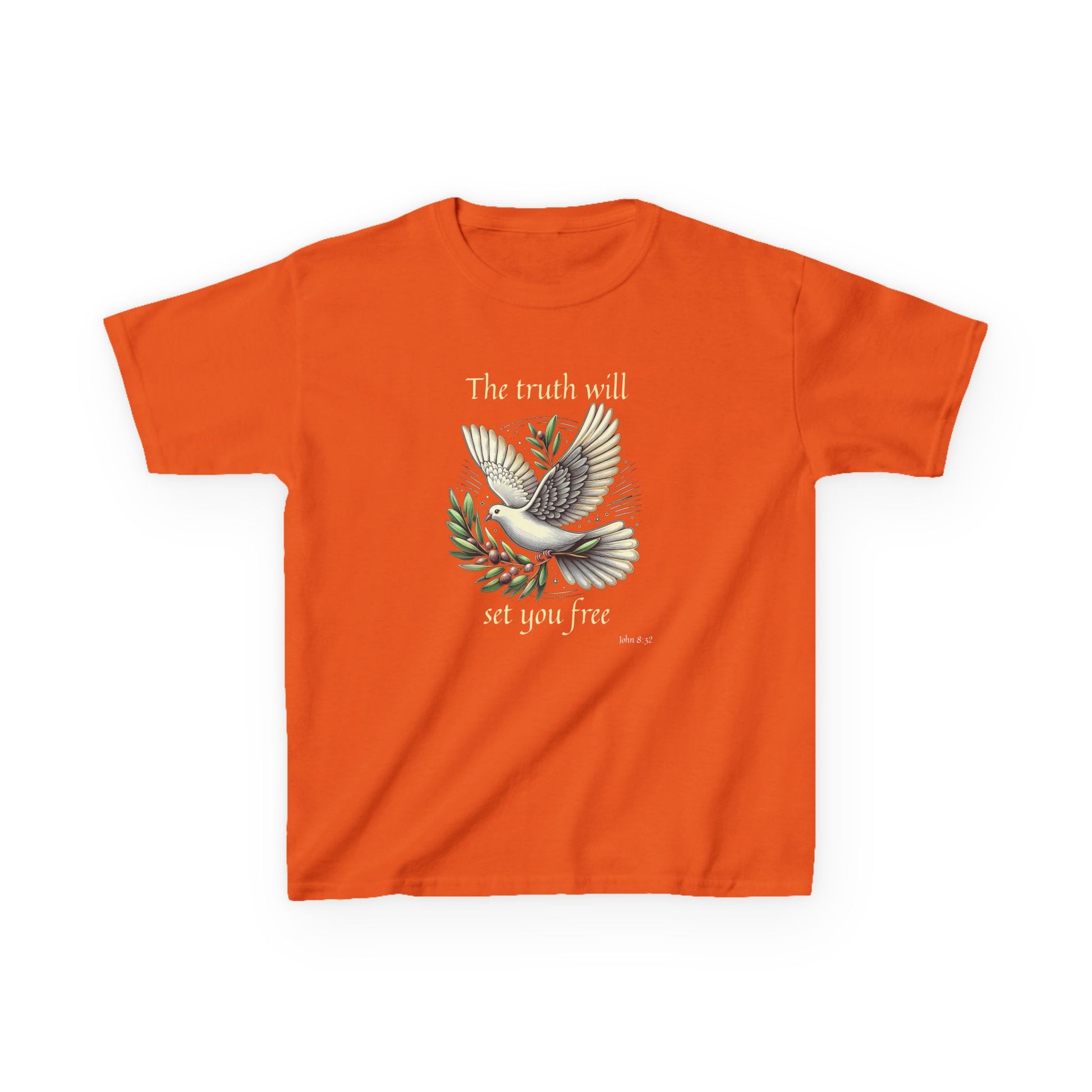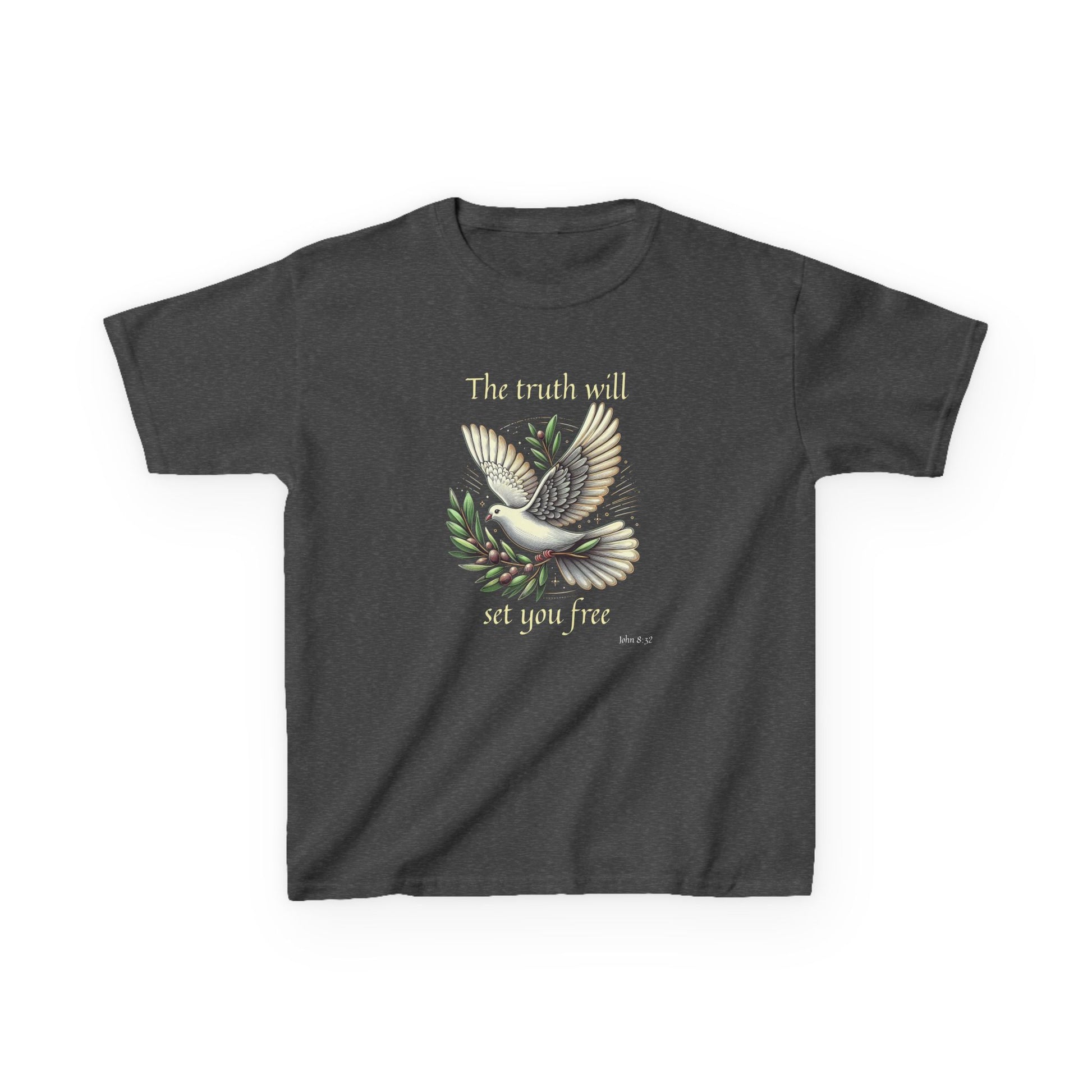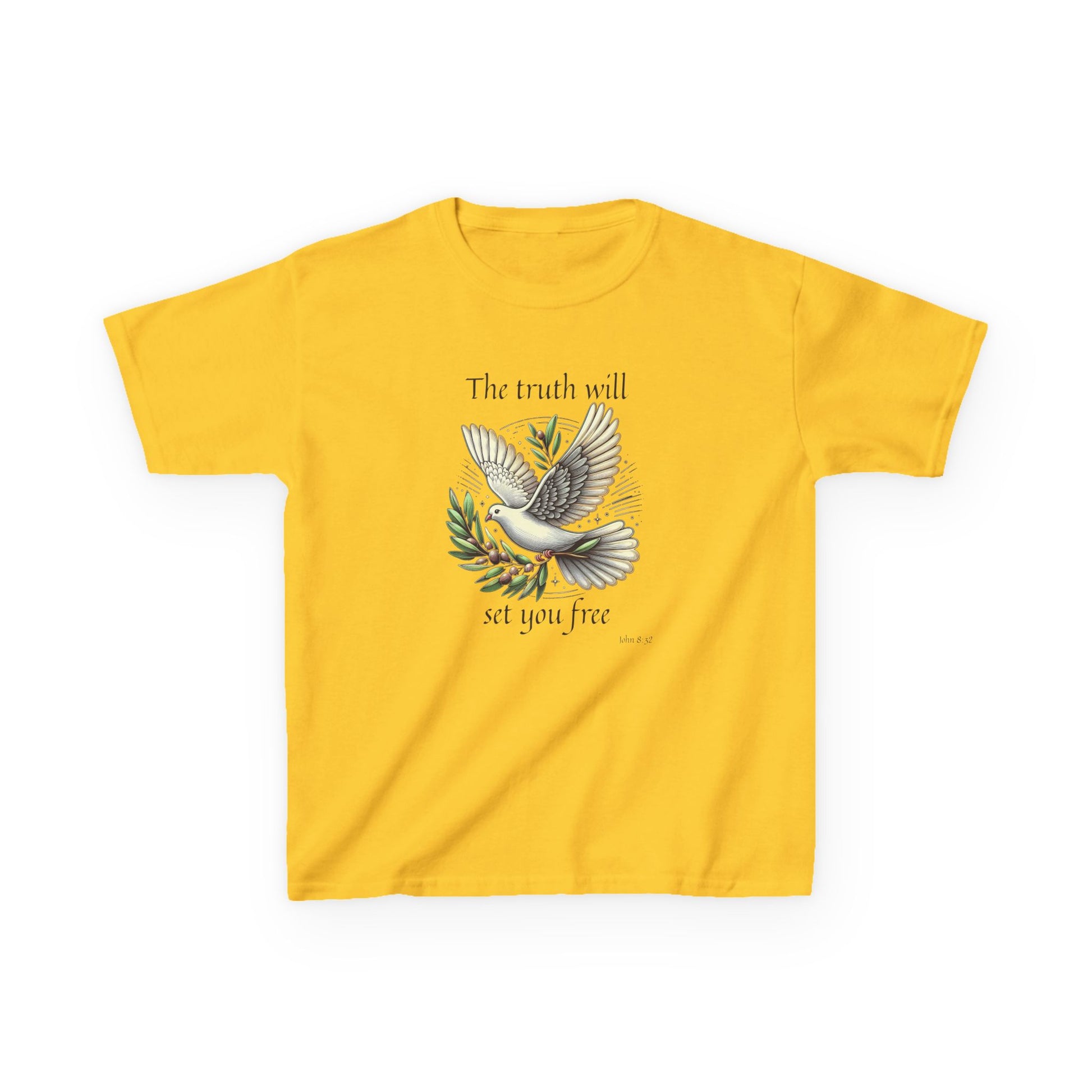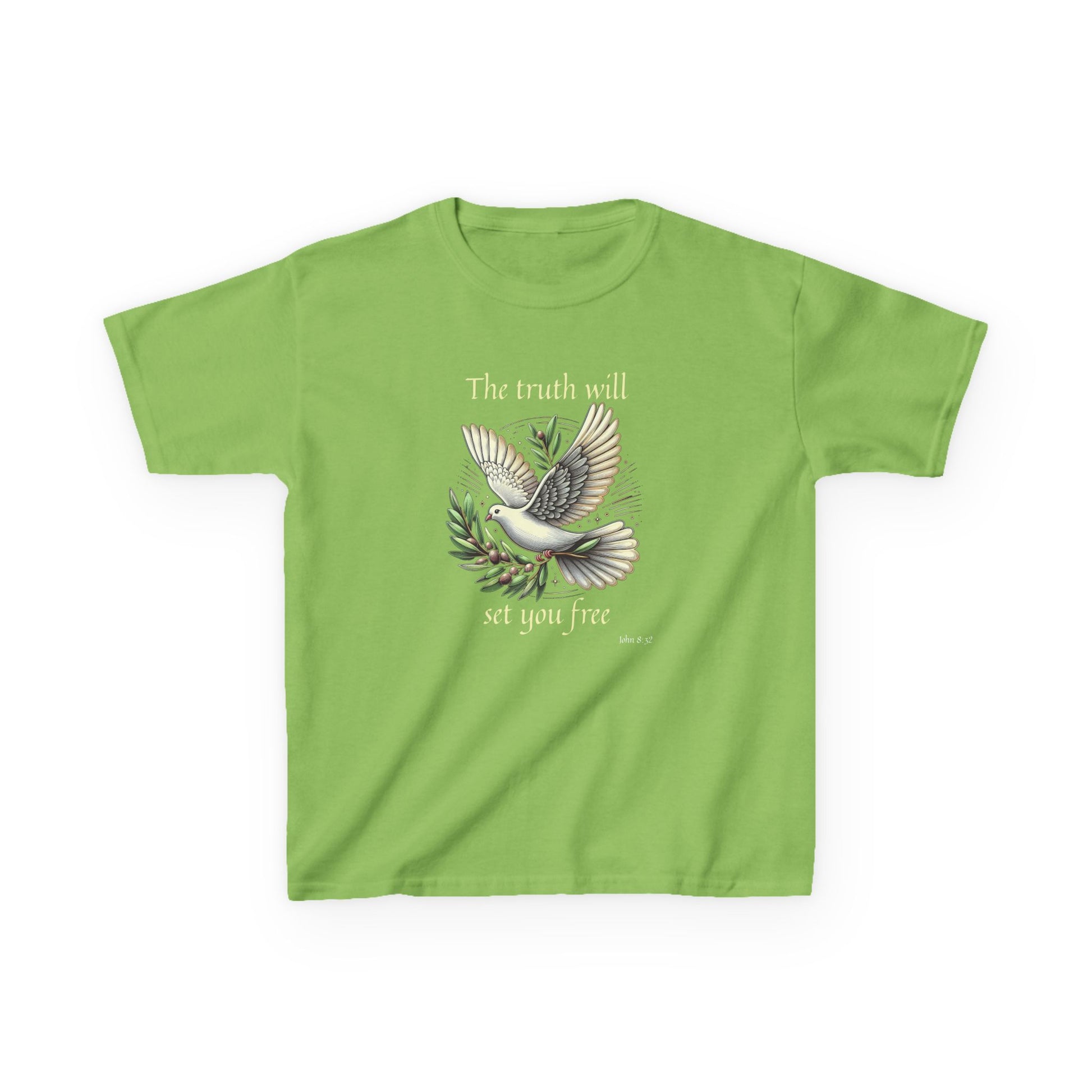 .: Avant : Une colombe portant un rameau d’olivier. Le texte dit : "The truth will set you free [John 8:32]"